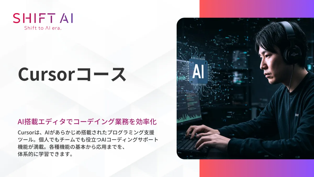 2025年3月14日、株式会社SHIFT AIが法人向けに新たなオンライン学習コース「Cursorコース」を公開します。このコースは特にエンジニア向けに設計されており、生成AI技術を活用して開発現場での生産性向上を目指しています。