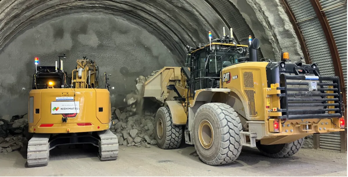 近年、山岳トンネル施工では、切羽での岩盤崩落事故を防ぐための安全対策や、若手人材の減少に伴う労働力の不足が深刻な問題となっていました。このような状況下で、作業員を切羽近くから遠ざけ、現場の安全を確保する無人化技術が求められていたのです。これに応える形で、西松建設はトンネル施工のための遠隔操作・自動化技術「Tunnel RemOS」を開発し、アラヤはその一環としてバックホウの自動化技術を推進してきました。