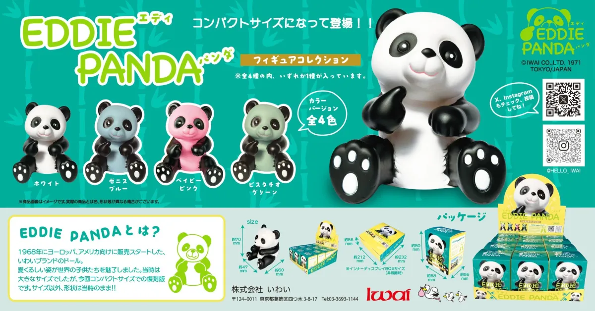 昭和の時代を活き活きと思い出させる「EDDIEパンダフィギュアコレクション」が、株式会社いわいから2026年3月上旬に発売されることが決定しました。このフィギュアは、1960年代に人気を博したパンダの姿を再現しつつ、手のひらに収まる大きさにデザインされています。これにより、どこでも手軽に懐かしのパンダを楽しむことができるのです。