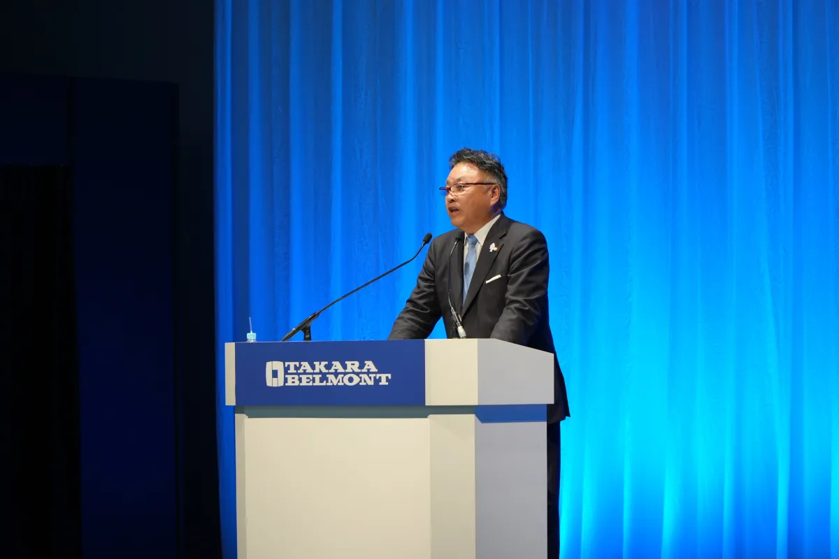イベントの冒頭では、タカラベルモントがこれまで支えてくださった参加者への感謝を込めた特別映像が上映され、その後、同社やグループ会社の代表者たちによる紹介が行われました。吉川社長は、長年のパートナーシップに感謝の意を示し、今後の協力関係を強化していく決意を表明しました。