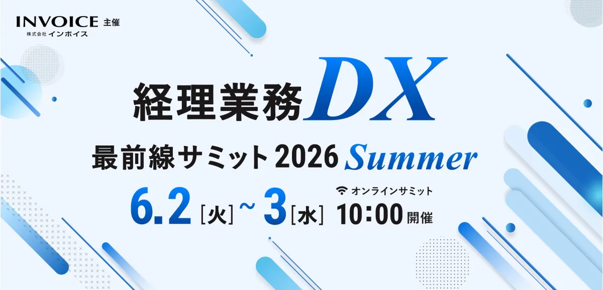 株式会社インボイスが主催する「経理業務DX最前線サミット 2026 Summer」が、2026年6月2日(火)・3日(水)の2日間にわたって開催されます。本カンファレンスのテーマは「次世代経理のロードマップ」「人手不足」を「仕組み」で超える、経理組織の作り方 15選です。このイベントはオンラインで行われ、参加費は無料。また、事前登録が必要です。