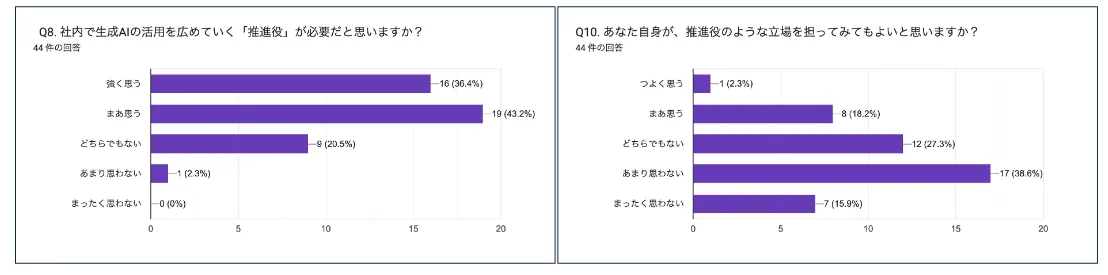 この新プログラムは、ブリヂストンフローテック株式会社でのパイロット導入を経て、その効果が実証されました。参加者へのアンケートによると、約90%の人々が生成AIの活用意欲を高め、実際の業務での活用を希望しています。しかし、実際に活用できる人材は約25%と限られており、推進役の育成が急務であることが浮き彫りになりました。