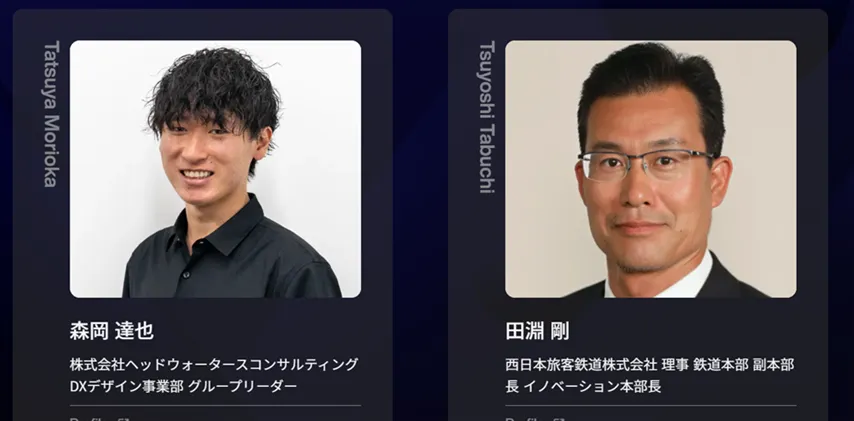 本セッションのテーマは「鉄道におけるAI活用と業務の未来」で、講演者にはJR西日本のイノベーション本部長田淵剛氏と、ヘッドウォータースコンサルティングのDXデザイン事業部グループリーダー森岡達也氏が登場します。具体的には、両社が連携して推進している「Copilot for 駅員」の導入事例を通じて、AIエージェントの実践例が紹介される予定です。