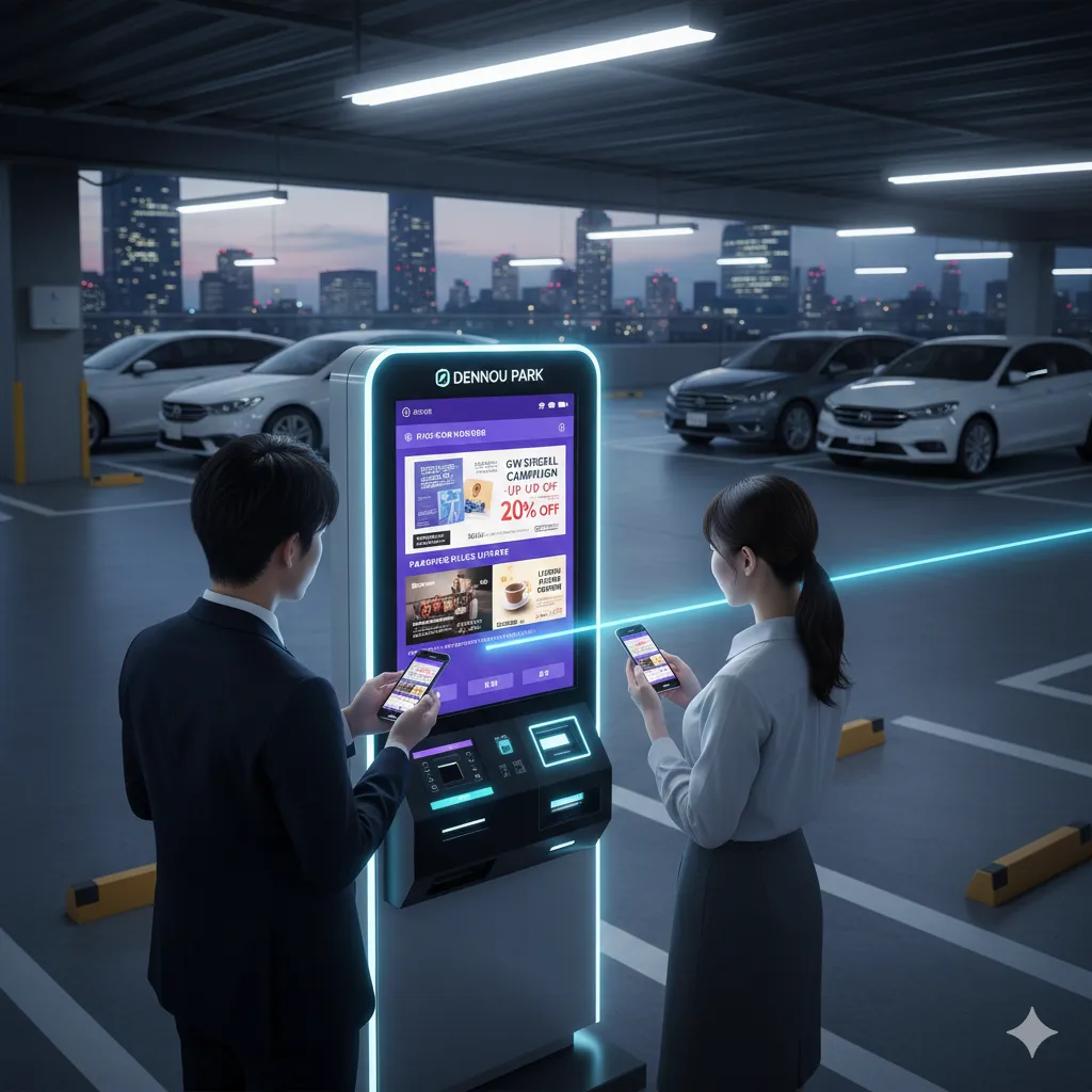 駐車場の精算時は、利用者が必ず通過するタイミングであり、情報が届きやすい接点です。従来の掲示物は更新が難しく、タイムリーな周知ができないことが課題でした。この新たな仕組みによって、運営者は情報発信と販促が可能になるため、駐車場の運営価値を大幅に高めることができます。