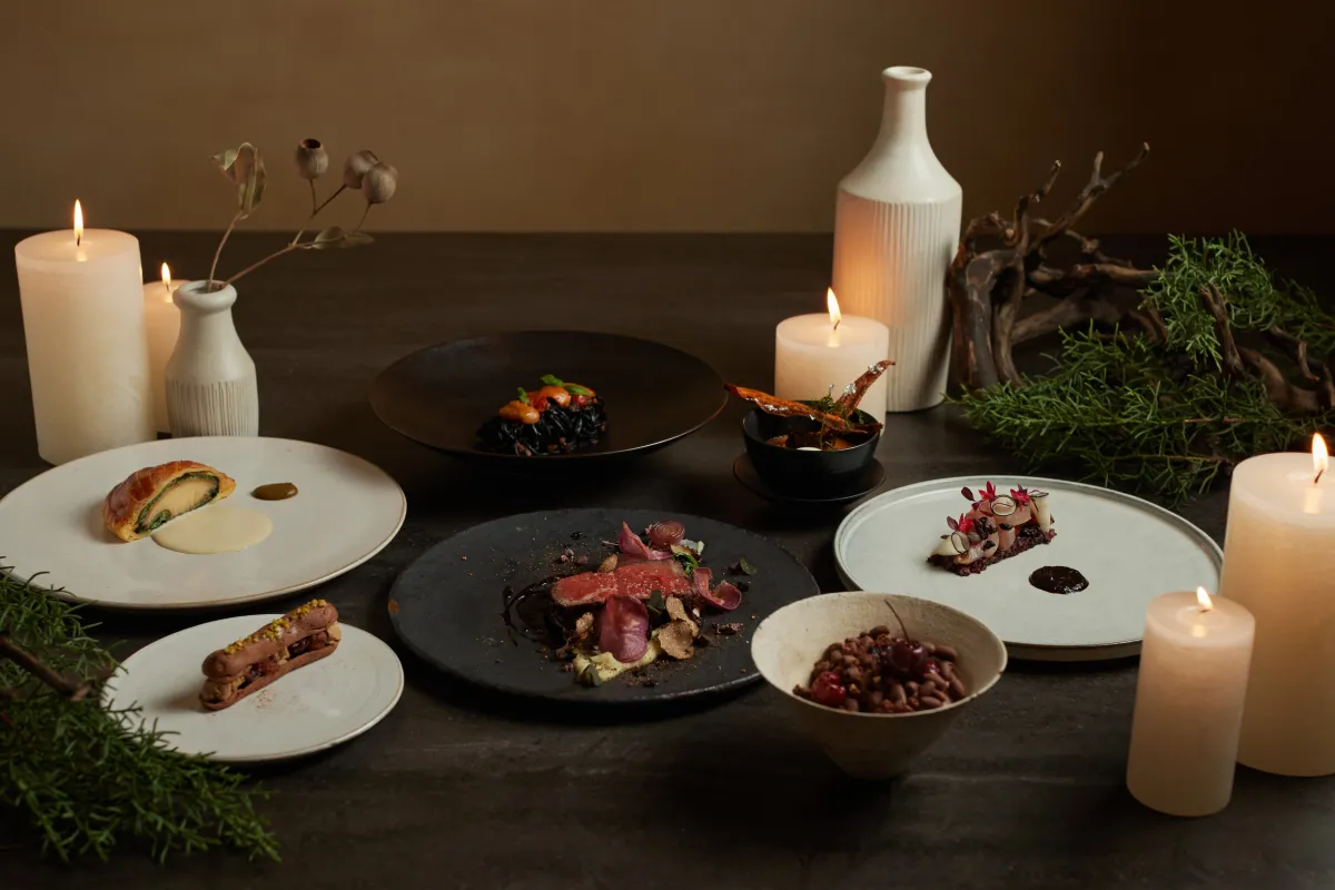 特に注目のメニューでは、フォアグラコンフィのエクレアや、北海道産の帆立貝とキャビア、さらには青森の平目の料理が用意されており、それぞれがシェフによって巧みにアレンジされています。コース料理は、心温まる雰囲気の中で特別なひと時を演出するため、TRUNK(HOTEL)のフラワーデザインチームによる装飾も施されています。美しい植物で彩られた店内で、クリスマスの気分を盛り上げながら至福のひとときをお過ごしください。