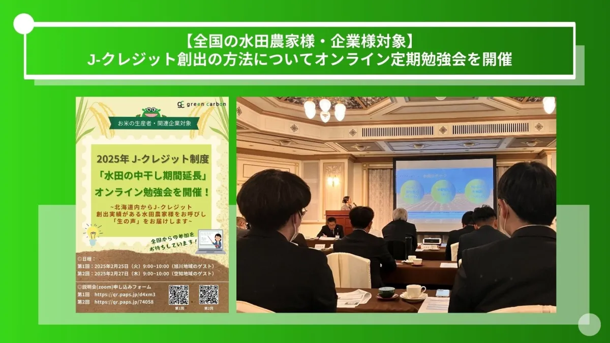 Green Carbon株式会社は、全国の水田農家や企業向けに、メタンガス削減を通じたJ-クレジット創出に関するオンライン勉強会を実施します。これにより、多くの農家が持続可能な農業に取り組むヒントを得られることでしょう。