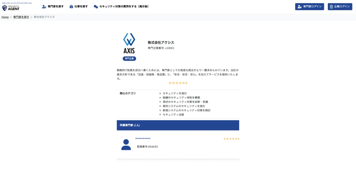 従来の「セキュリティエージェント」は、個人の専門家のみが登録できる仕組みでしたが、企業の専門家登録が可能になることで、組織全体の強みや実績をアピールできる新たなチャレンジが実現しました。企業は、組織単位での専門性を発信し、案件獲得の機会を広げることが可能となります。これにより、複数の専門家が連携し、大規模なプロジェクトにも柔軟に対応できる環境が整いました。