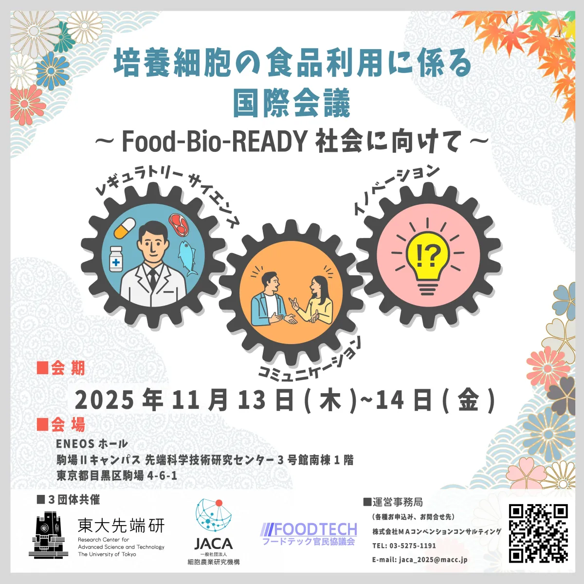 - - タイトル: 培養細胞の食品利用にかかる国際会議~Food-Bio-READY社会に向けて~