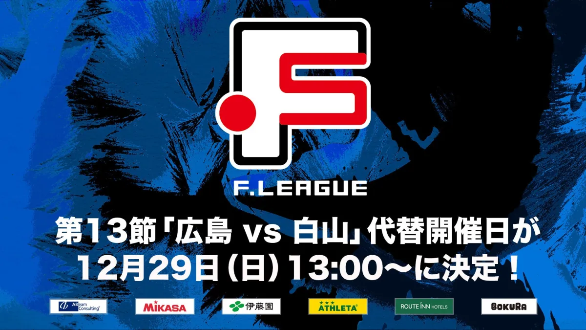Fリーグ2024-2025 ディビジョン2第13節の注目カード「広島エフ・ドゥ vs ヴィンセドール白山」の代替開催日が、ついに決定しました。元々の開催予定日は、土砂災害および洪水警戒に伴う避難指示が発令されたため、延期となっていましたが、12月29日の日曜日、13:00から大和興産安佐北区スポーツセンターで行われます。