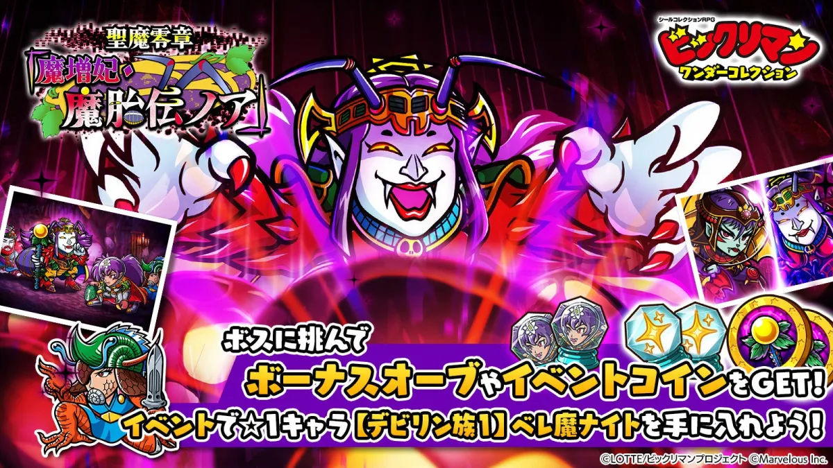シールコレクションRPG『ビックリマン・ワンダーコレクション』が新たに、期間限定イベント「聖魔零章『魔増妃・魔胎伝ノア』」を開始しました。このイベントは2025年3月28日にメンテナンス後に導入され、ファンたちに特別なストーリーと新キャラクターの登場を提供します。