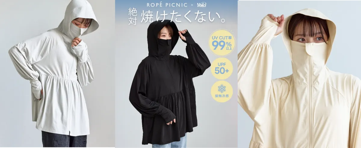 紫外線が強くなるこれからの季節、おしゃれを楽しむ女性にとって、日焼け対策は欠かせないポイントです。そんな中、クロスプラス株式会社が提案する「ROPÉ PICNIC」と「Yoki」からコラボレーションによる日焼け対策アイテムが登場しました。この“絶対焼けたくない”日焼け対策シリーズは、機能性ファッションを追求した「Yoki」と、フェミニンなデザインを得意とする「ROPÉ PICNIC」との結晶です。