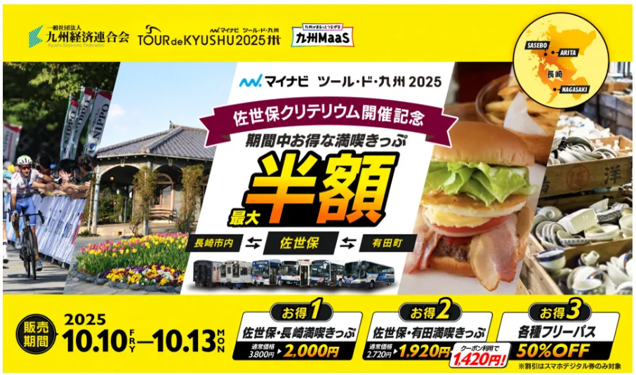 2025年10月から2026年2月にかけて、佐世保市内および有田町を観光する際に便利な『佐世保・有田満喫きっぷ』が新たに登場します。この特別きっぷは、西肥自動車株式会社(西肥バス)やJR九州とともに、地域観光の振興を目的に共同で作り上げたデジタルチケットです。
