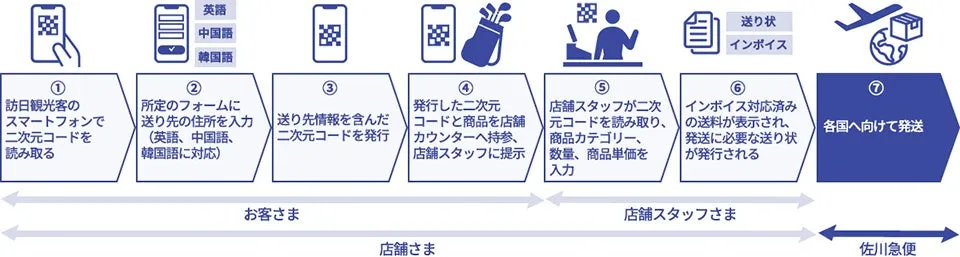 新たに導入されるこのシステムは、訪日観光客がスマホを使い、言語の壁を越えて簡単に海外発送に必要な送り状を発行できる点が大きな特徴です。利用者は、訪れた店舗で購入した商品の送り状を、その場で直接作成できます。これにより、手荷物預かり所を探す手間や、満員の公共交通機関での不便さから解放されることが期待されています。さらに、店舗スタッフへの負担を軽減し、店舗運営をより効率化できる効果もあると見込まれています。