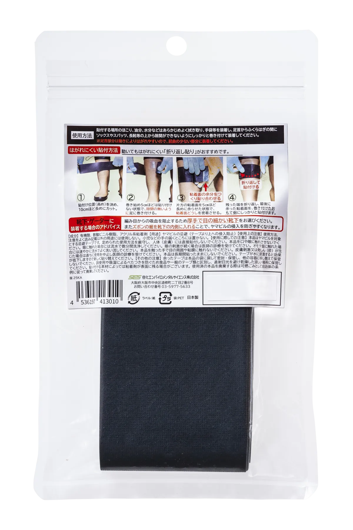 『ヒルガード』は、長靴や靴下に巻きつけるだけで簡単にヤマビルの侵入を防ぐことができる優れた商品です。その特長は、テープ表面に施された特殊コーティングによるものです。ヤマビルがこのテープに触れると、すぐに嫌な感覚を覚え、這い登ることができません。日本に生息するヤマビルは飛翔能力を持っていないため、足元での対策が非常に効果的です。