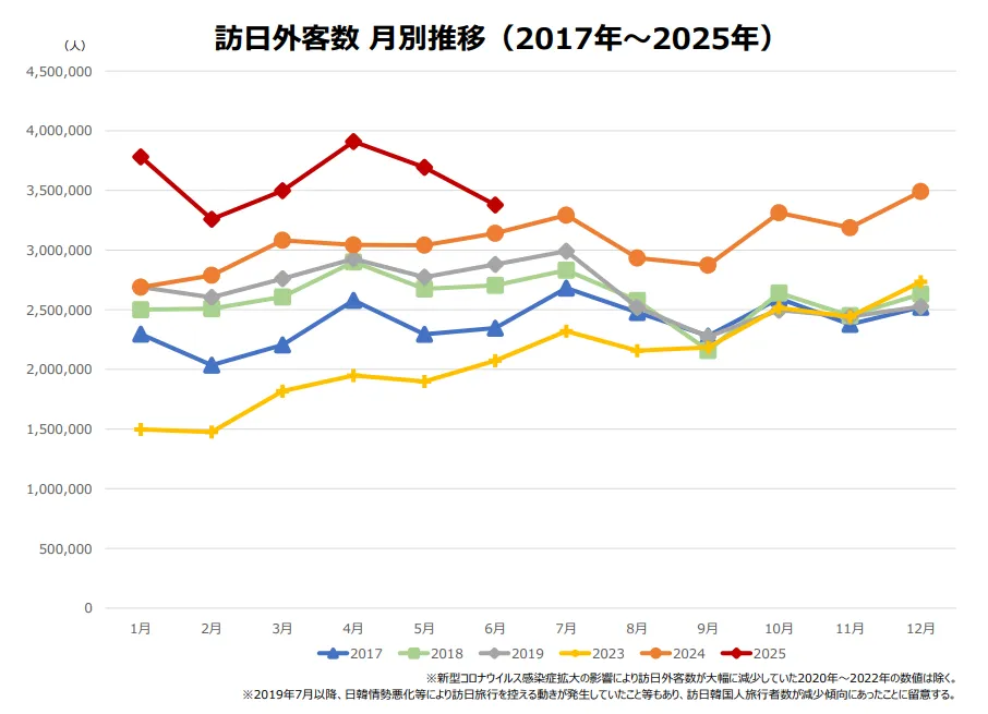 日本政府観光局(JNTO)の最新データによると、2025年の訪日外国人数はコロナ前に比べて120%を超え、近年の観光市場の回復を印象づけている。特に関西圏においては、宿泊需要が急増しており、民泊やホテルの稼働率が向上を続けている。この背景には、万博の開催が大きな影響を及ぼしており、国内外からの観光客を惹きつける要因となっている。