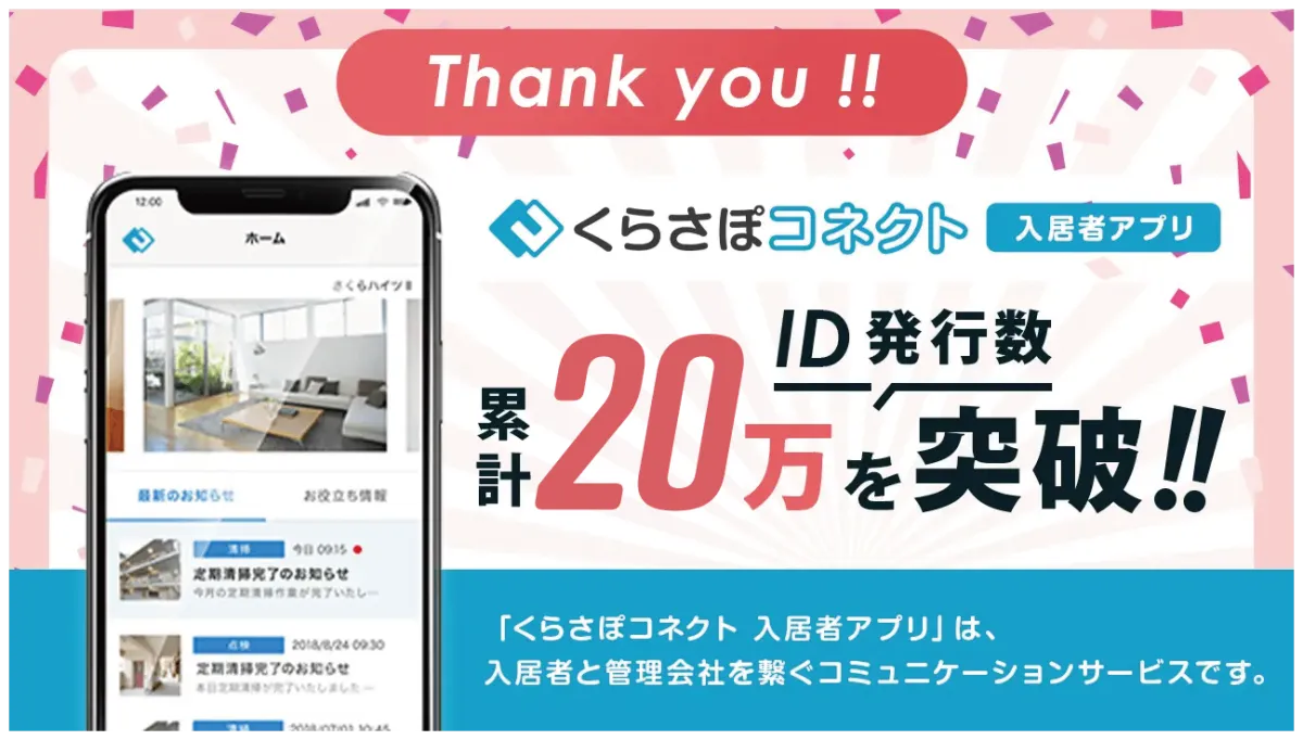 20万ID発行突破!くらさぽコネクト入居者アプリの実力