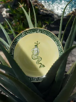 「イル ヴィアッジョ ディ ネットゥーノ」の新章は、2019年に始まったジノリ1735とのコラボレーションを基盤としており、ギリシャの陶器や海にまつわる神話からの影響を色濃く受けています。新たに追加されたアマルフィレモンやスカイブルー、テラコッタ、パイングリーンなどのアースカラーは、地中海の休日を思い起こさせるものです。コレクションには、海の神ネプチューンをはじめ、女神やタツノオトシゴといったキャラクターが描かれています。