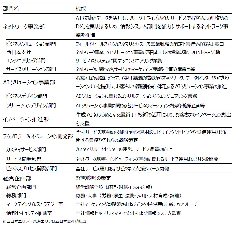 この部門は、AI技術とデータを駆使し、パーソナライズされたネットワークサービスを提供します。これにより顧客は、効果的なデジタル戦略を実現できるようになります。特に、情報システム部門との連携を強化し、より効果的なサポート体制を構築する予定です。