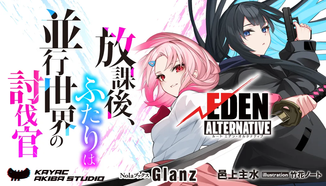 カヤックアキバスタジオ初の小説『放課後、ふたりは並行世界の討伐官ルートエデン・オルタナティブ』が登場