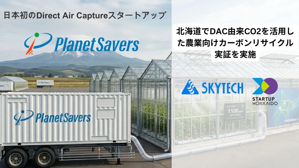北海道がGX関連産業の集積と金融機能の強化を進める地域として、2024年にはGX金融・資産運用特区に指定される予定です。再生可能エネルギーが豊富な北海道では、脱炭素技術が特に適しており、Planet Saversはこの地域でのDAC技術のファーストステップを踏み出しました。DACは大気からCO2を回収し、これを農作物の成長に役立てることで、カーボンリサイクルのモデルを実現しようとしています。