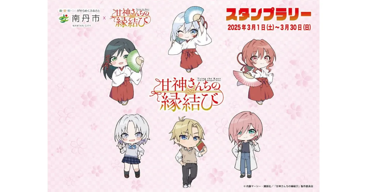 2025年3月1日から30日まで、京都府南丹市にて、人気TVアニメ『甘神さんちの縁結び』と連携したスタンプラリーが行われます。このイベントは、アニメの原作者である内藤マーシー先生の故郷である南丹市の魅力を広めることを目的としており、DMM地方創生が企画と運営をサポートします。