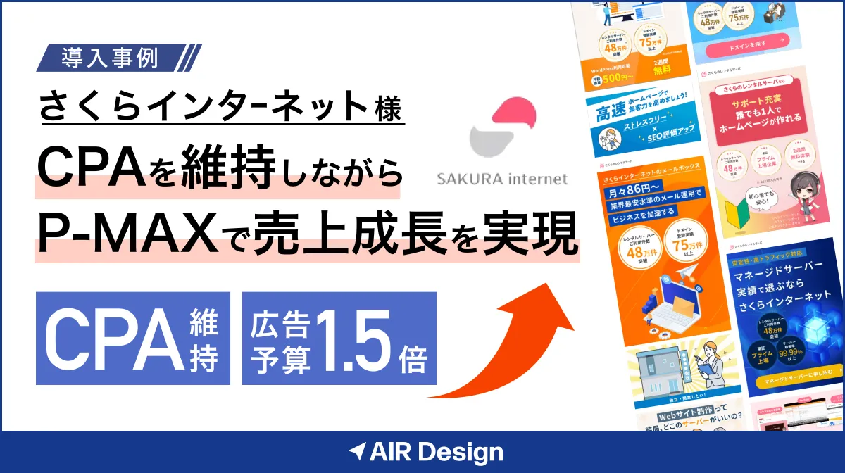 2023年、デジタルインフラサービスを展開するさくらインターネット株式会社は、広告戦略の見直しを図り、ガラパゴスの「AIR Design」を導入しました。この取り組みによって、広告予算を1.5倍に拡大しながらも、CPA(1件獲得あたりのコスト)を維持することに成功。結果として、売上の成長を実現しました。