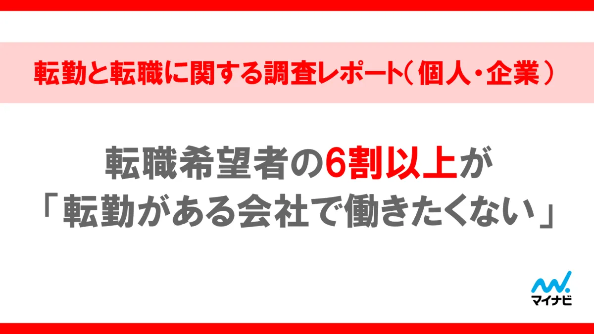 株式会社マイナビが発表した最近の調査によれば、転職希望者の約65%が「転勤がある会社で働きたくない」と答えました。この結果は、転勤に伴う経済的負担や精神的ストレスが多くの人にとって深刻な懸念であることを示しています。調査の詳細を掘り下げ、その背景にある理由や今後の企業の動向について考察してみましょう。