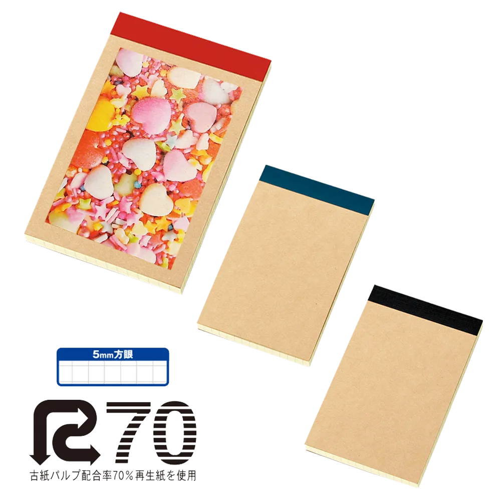 UP-T(アップティー)には、環境への配慮を大切にした新商品が加わりました。それが「リサイクルA7メモパッド」です。このメモパッドは、小型で持ち運びやすく、日常的なメモやアイデアをすぐに書き留めるのに非常に役立ちます。