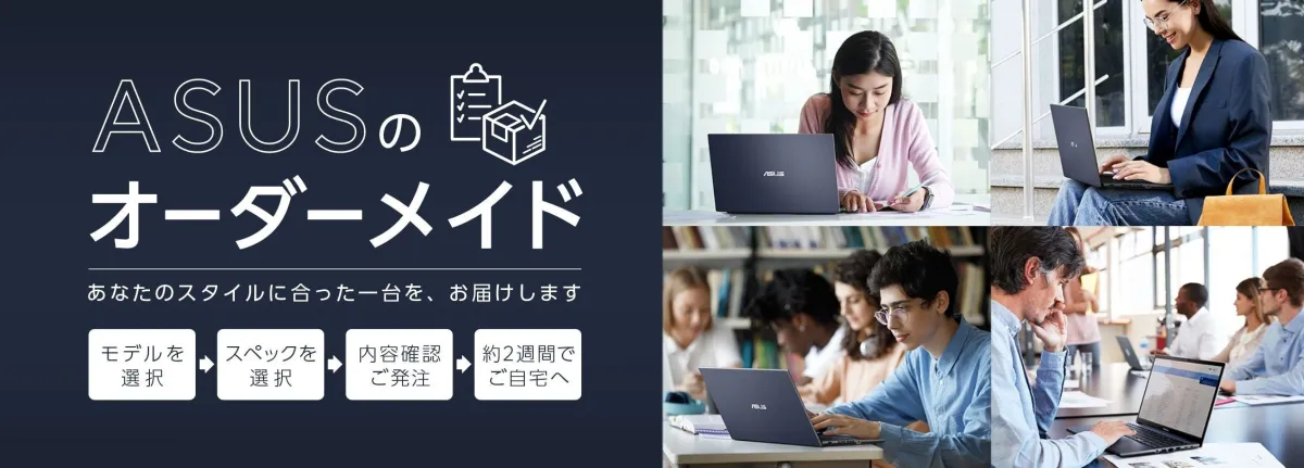 「ASUSのオーダーメイド」専用サイトでは、幅広いカスタマイズオプションが用意されています。スペックの詳細は専用サイトのカスタマイズシミュレーションを使用すれば、直感的に確認することができ、自分だけの理想的なノートPCを構築できます。