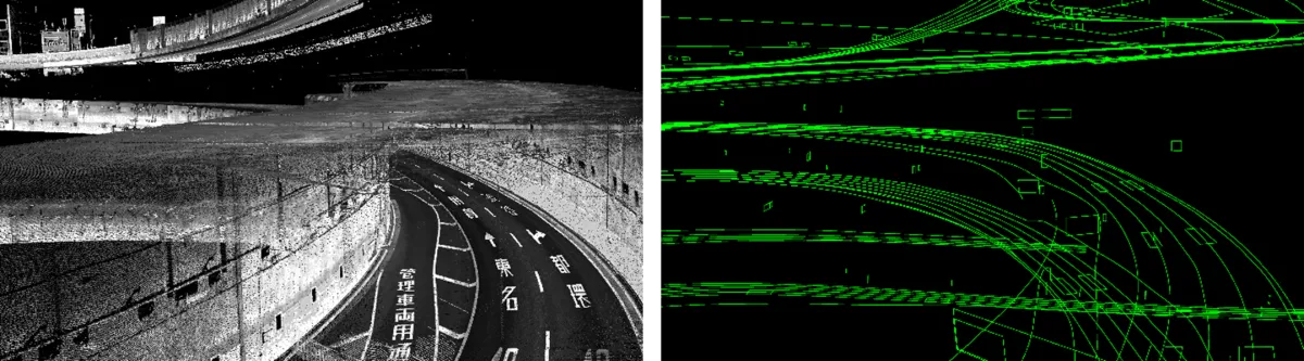 自社のHDマップは、自動運転や高度運転支援システム(ADAS)、さらにはインフラ管理やシミュレーション環境の構築に活用可能です。これにより、実際の道路環境のデジタル再現が実現し、安全で効率的な運転支援が可能となります。