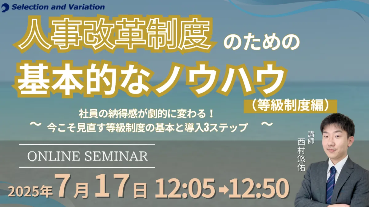 近年、企業は変化の激しい環境に直面しています。VUCA(Volatility, Uncertainty, Complexity, Ambiguity)時代において、企業は外部の変化に柔軟に対応する必要があります。その中で、特に人事制度の見直しが求められるケースが増えています。年功序列から成果主義への転換や、優秀な人材の確保、早期離職の防止が企業の課題となっています。これを踏まえて、セレクションアンドバリエーション株式会社では『人事制度改革のための基本的なノウハウ(等級制度編)』という無料セミナーを開催します。