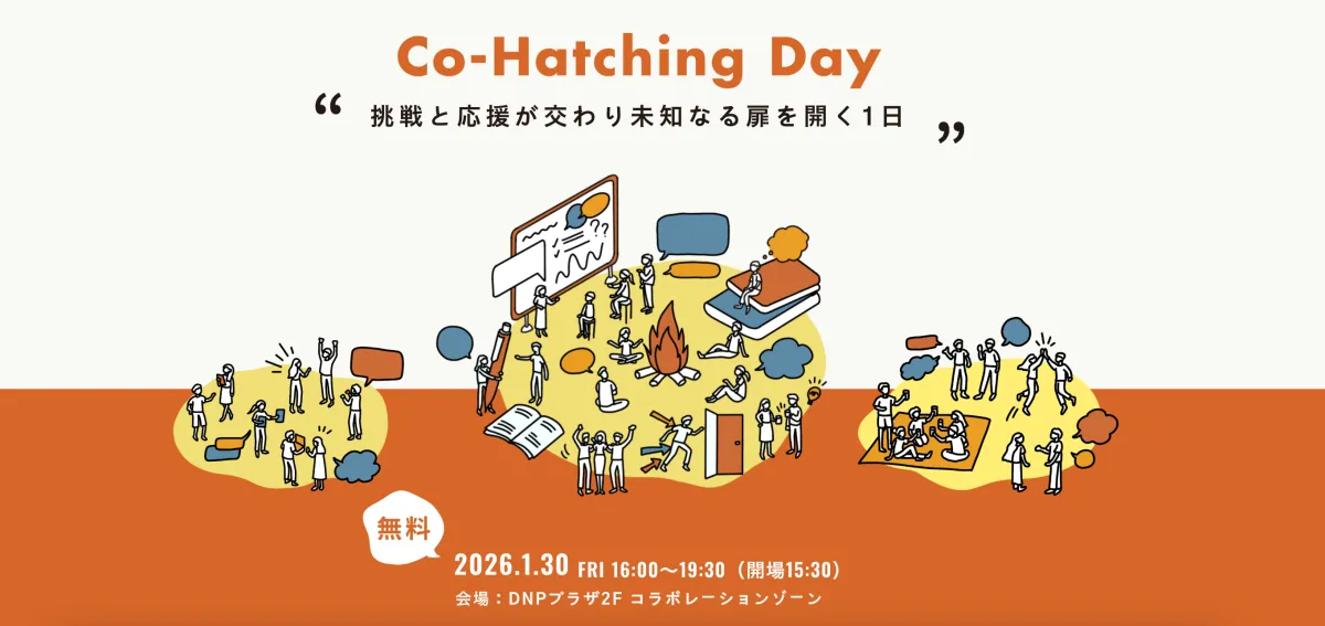 企業の新たな価値を生み出すためのイベント、"Co-Hatching Day 2026 Winter"が2026年1月30日(金)にDNPプラザ(東京・市ヶ谷)で開催されることが決まりました。成熟した企業が直面する「事業を創る」ことと「組織を変える」ことをテーマに、多様なバックグラウンドを持つリーダーたちが一堂に会し、実践的な知見を共有します。