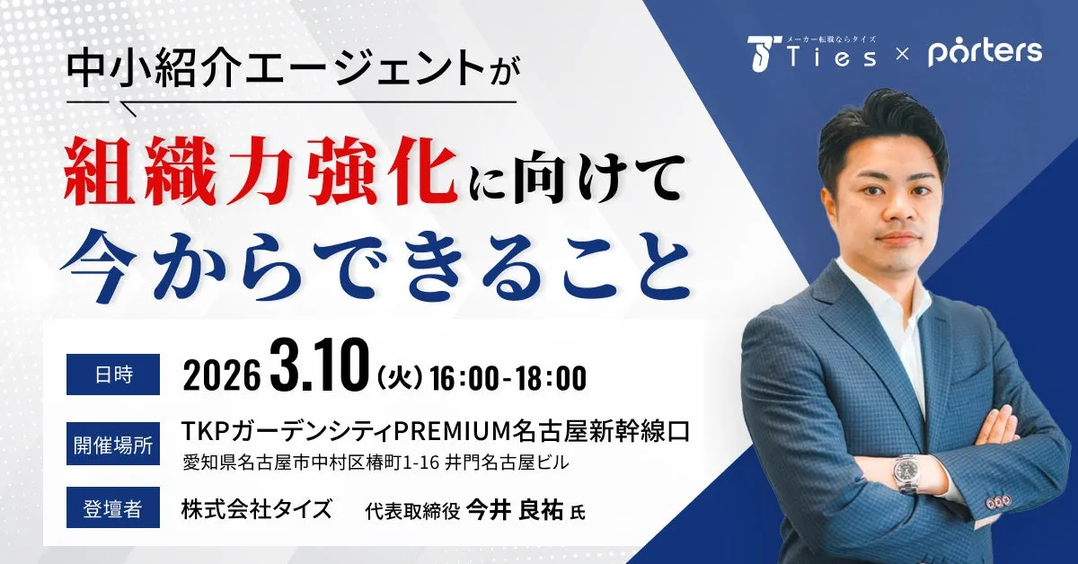 2026年3月10日、名古屋にて中小規模の人材紹介企業に向けた重要なセミナーが開催されます。このイベントには、株式会社タイズの代表取締役である今井良祐氏が登壇し、中小の人材紹介エージェントが競争激化の中で生き残るための実践的な戦略を紹介します。