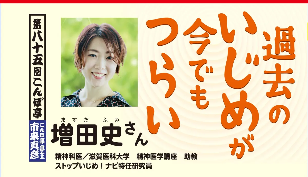 今回のオンラインイベントでは、いじめがもたらす精神的な影響について、精神科医の増田史(ますだ・ふみ)氏が講師として登場します。増田氏は、滋賀医科大学の助教として精神医学を教え、特にいじめやハラスメントに関する調査に取り組んでいます。彼の講演では、いじめ被害者が抱える心の痛みと、その影響がどのように長期的に続くかについて詳しく解説されます。