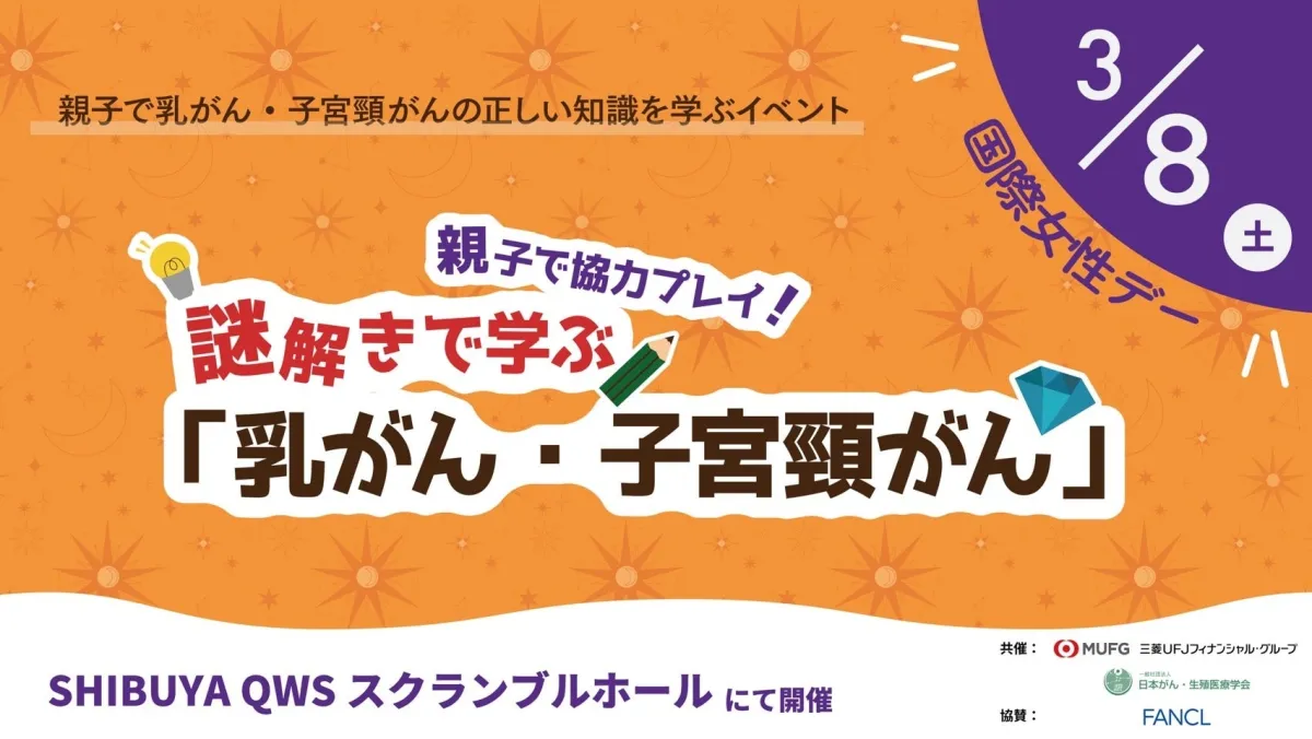 2025年3月8日(土)、国際女性デーを記念して、株式会社三菱UFJフィナンシャル・グループ(MUFG)が一般社団法人日本がん・生殖医療学会(JSFP)と共同で、女性や若い世代を対象にした「乳がん」「子宮頸がん」に関する学びのイベントを開催します。場所は渋谷のSHIBUYA QWS スクランブルホールで、参加者は謎解きを通じてがんの正しい知識を学ぶ楽しい体験を提供されます。
