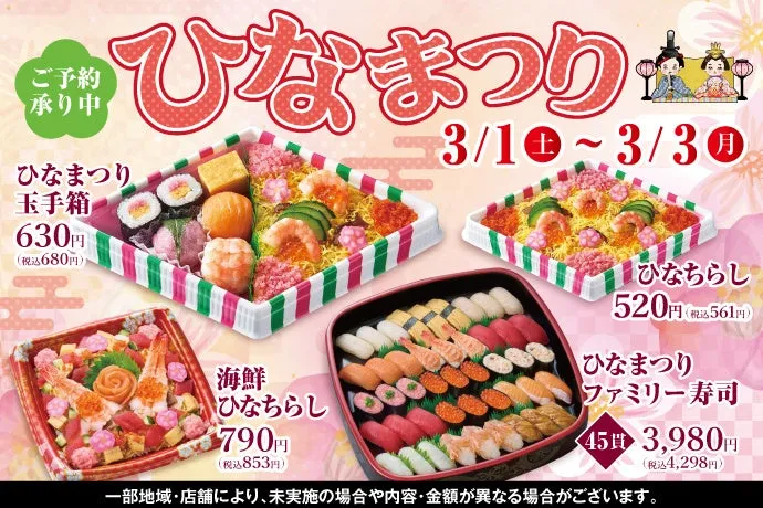 ひなまつりに向けて、小僧寿しのお寿しで心温まるひと時をどうぞお楽しみください!