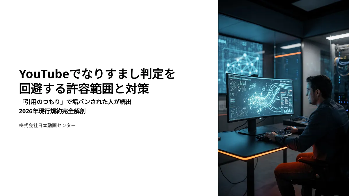 株式会社日本動画センターが2026年のYouTubeの新しい自動判定システムに関する資料を無料で公開しました。この資料では、YouTubeでの「なりすまし」と「オマージュ」についての許容範囲や、アカウントBANを回避するための対策が詳細に解説されています。特に、2025年のポリシー更新以降、これらの判定が以前の運用とは大きく異なり、より厳格になったことがポイントです。