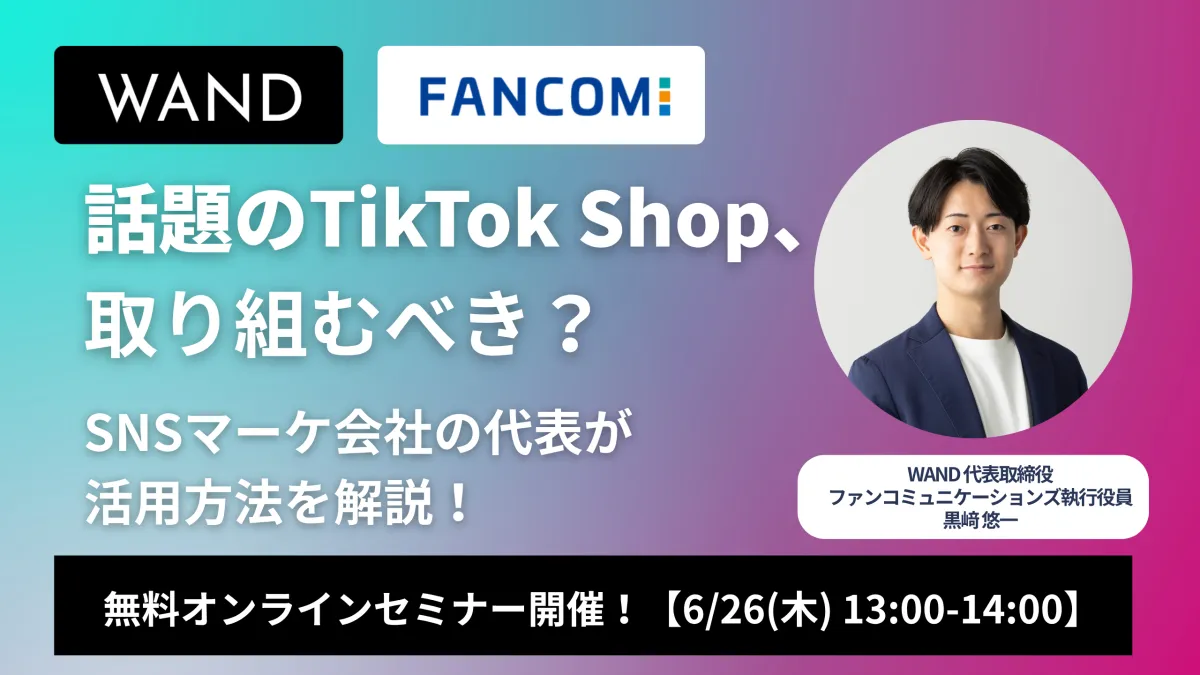 株式会社WANDは、2025年6月26日に無料オンラインセミナーを開催します。このセミナーでは、SNSプラットフォームであるTikTokを活用した売上拡大戦略が紹介されます。特に、ショート動画やライブ配信に焦点を当て、「見る → 共感 → 買う」という購買行動の流れを説明します。