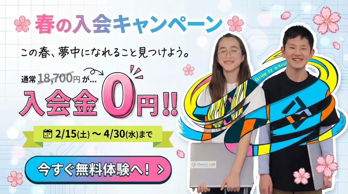 ITeens Labは、2026年2月15日から4月30日までの期間、「春の入会キャンペーン」を開始することを発表しました。このキャンペーンでは、通常18,700円(税込)の入会金がなんと0円に。新年度を迎えるにあたり、子供たちが安心して学びの第一歩を踏み出す機会を提供します。