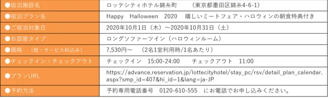 特別企画【1】宿泊プラン Happy Halloween 2020