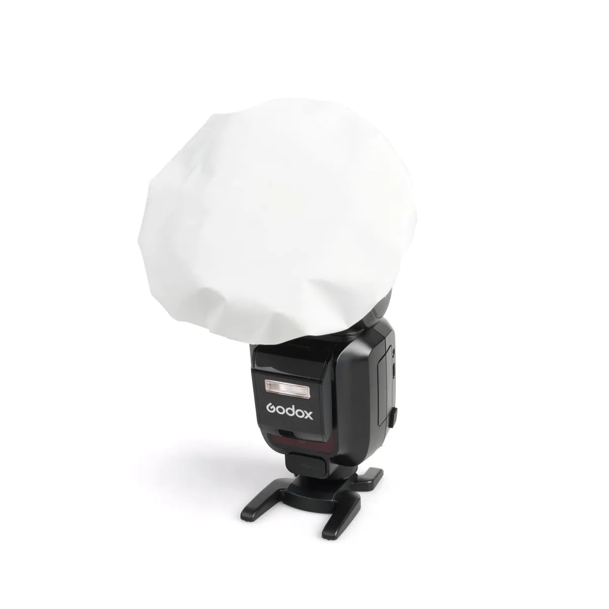 ライティングディフューザーは、ストロボやLEDライトの発光面にかぶせるだけで使用できます。特殊な機械操作は必要ありません。ディフューザーの開口部にあるゴムを広げて、発光部やリフレクターの前面に取り付けるだけというシンプルさです。この機能性は初心者からプロまで、幅広い層に受け入れられることでしょう。
