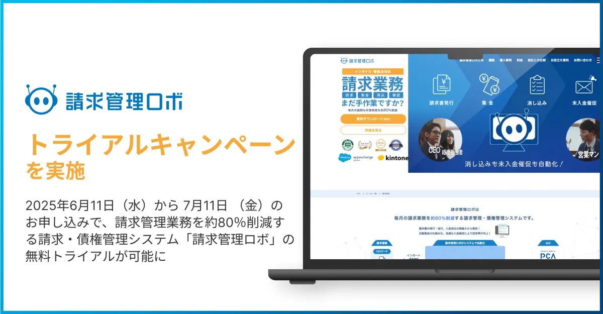 ROBOT PAYMENTでは、2025年6月11日(水)から7月11日(金)までの間、請求管理ロボの無料トライアルキャンペーンを実施します。このキャンペーンに申し込むことで、2週間の間、実際のサービスを体験できる機会が提供されます。