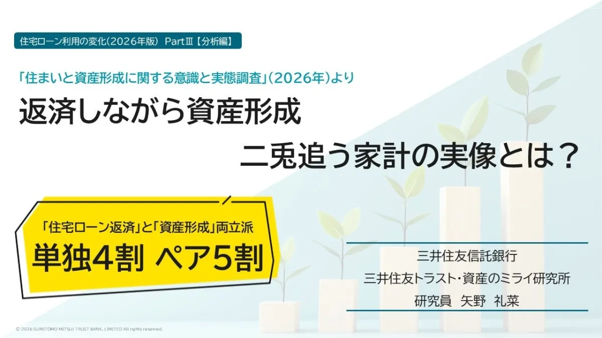 近年、住宅ローンの返済とその債務を抱えつつ資産形成に取り組む家計が増えています。三井住友信託銀行が設立した「三井住友トラスト・資産のミライ研究所」では、2026年1月に行った調査から、これらの世帯の実態を明らかにしました。この調査には、全国の18歳から69歳までの1万人を対象としたアンケートが含まれています。