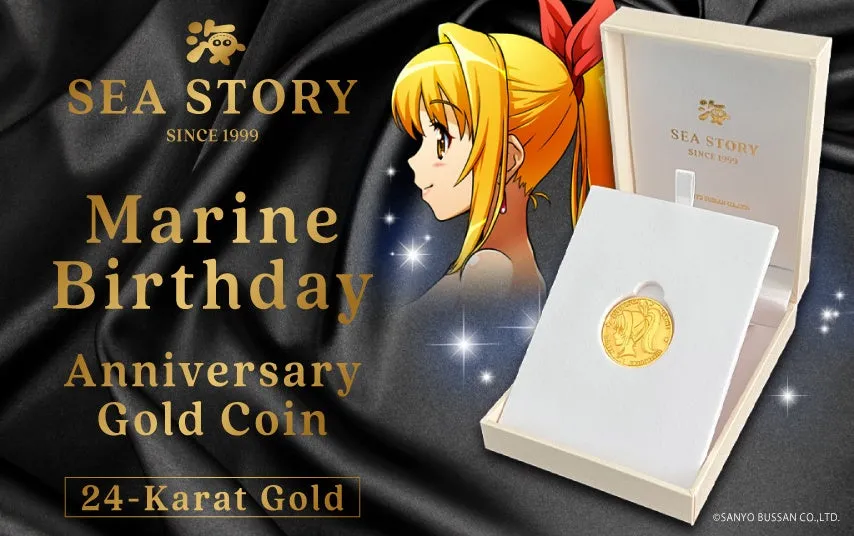 この純金コインは、限定生産のコレクターズアイテムとして、マリンの誕生日を祝うために特別に制作されました。コインの表面にはマリンの横顔が描かれ、気品と輝きが感じられる美しいデザインです。裏面には「海物語」のロゴが刻印されており、全てのファンにとって特別な意味を持っています。
