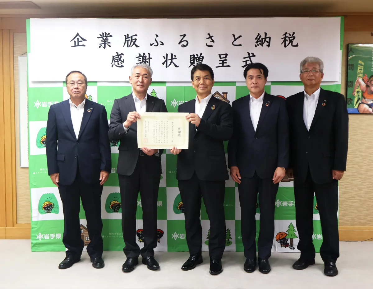 贈呈式には、タケエイの林業部門を代表する我妻修氏、岩手県副知事の佐々木淳氏、タケエイグループの幹部が出席し、温かい雰囲気の中で行われました。岩手県側は「地域の復興には企業の支援が不可欠であり、タケエイの支援に感謝しています」と述べました。