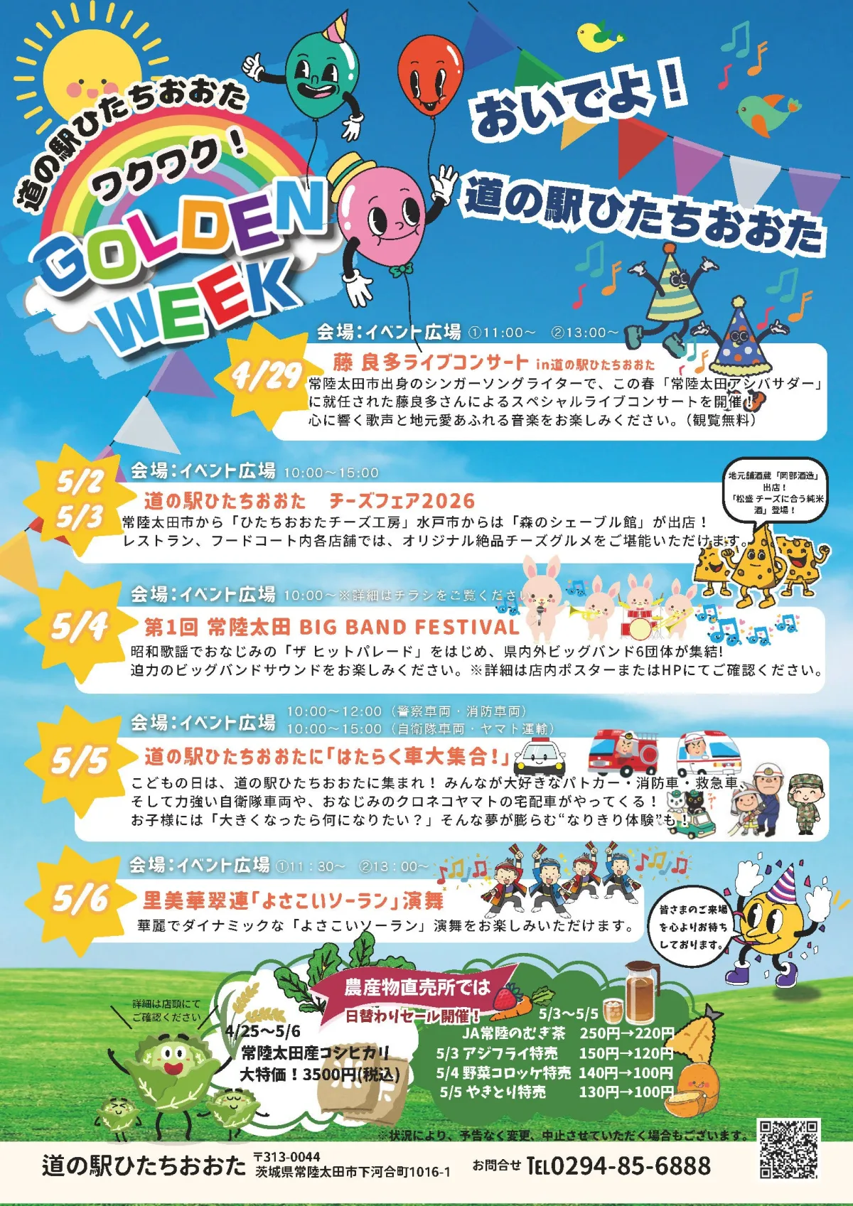 GWの計画にぴったりな道の駅ひたちおおたで、特別なひとときをお過ごしください。楽しいイベントが盛りだくさんのこの機会をお見逃しなく!