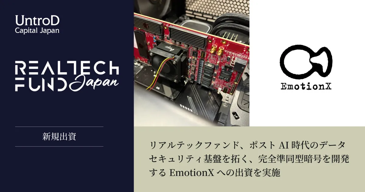 2023年10月、UntroD Capital Japanが運営するリアルテックファンドは、完全準同型暗号(FHE: Fully Homomorphic Encryption)技術の商用展開を目指すスタートアップ、EmotionX株式会社への出資を正式に発表しました。EmotionXは、FHEの開発を進め、ポストAI時代における新たなデータセキュリティの基盤を築くためのプロジェクトを始動します。