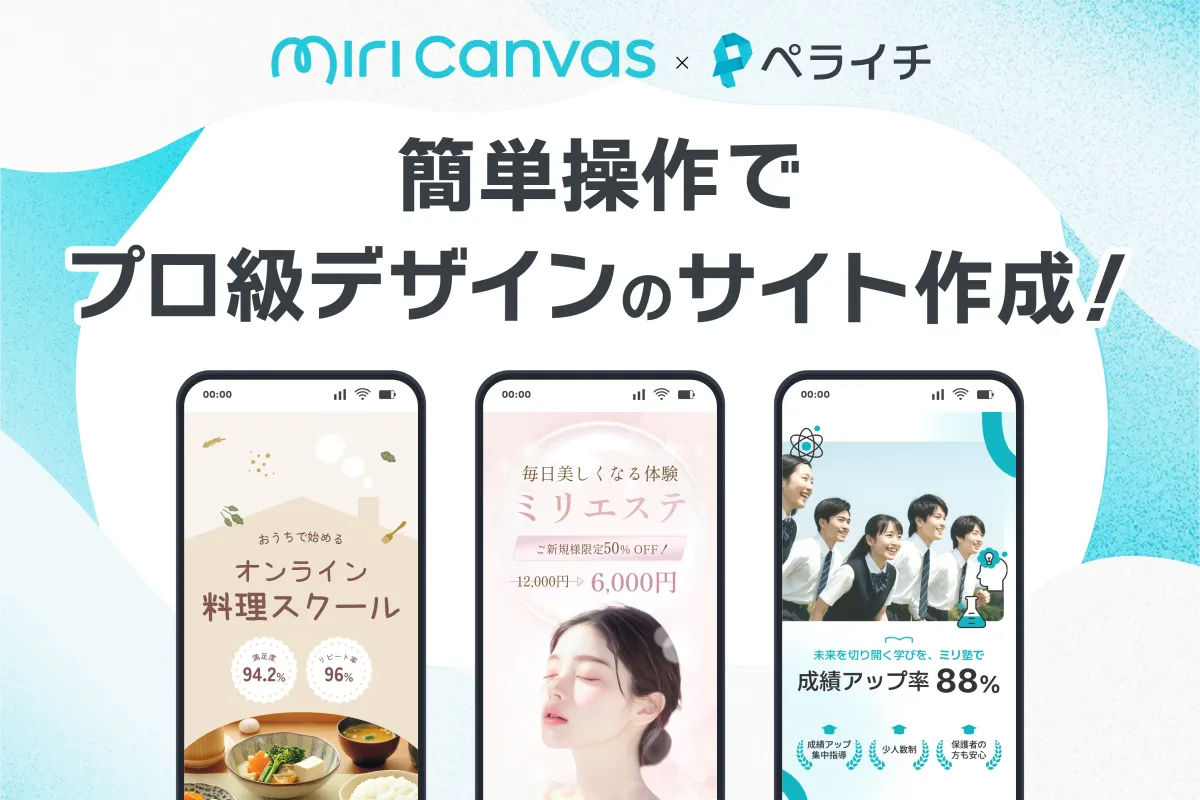 ミリキャンバスが制作した業種ごとの特別なテンプレートが、ペライチのプラットフォームにて利用可能に。