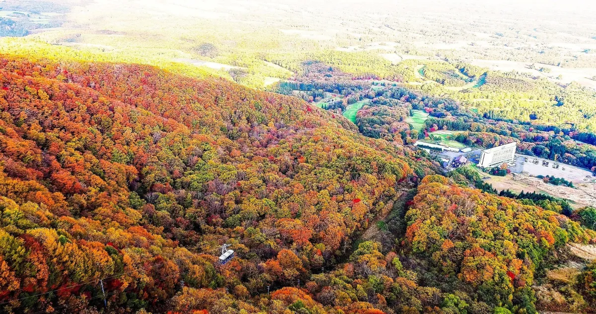 運行期間中、雫石紅葉ロープウェーは標高730メートルの山頂駅までの空中散歩を提供します。この運行は、紅葉が最も美しい時期に行われ、空中からはさまざまなグラデーションの紅葉や、黄金色に輝く田園風景を楽しむことができます。さらには、晴れた日には岩手山を始めとした美しい山々の景色もお楽しみいただけるので、絶好のフォトスポットです。