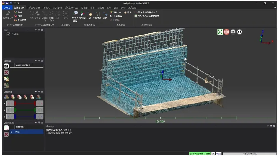 従来、配筋検査は手作業による業務が多く、特に施工管理においては、検査ロット数が増えることで準備作業が煩雑になる傾向がありました。これは時間と人的資源の負担となり、検査精度を確保する上でも悩みの種でした。このような状況を打破するために、「NuBas」の点群データ処理機能に着目しました。このシステムは、鉄筋の直径や本数、間隔といった詳細情報を自動計測し、視覚的な3Dモデルとして表示します。これにより、全体の施工状況を効率良く把握できるようになります。